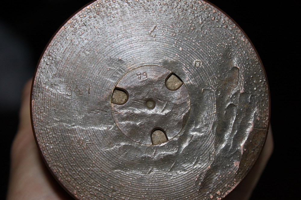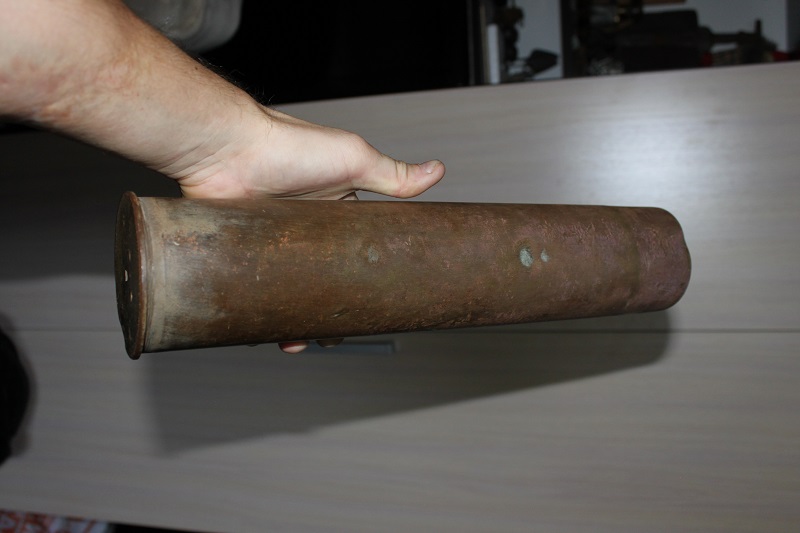 Гильза для нашей трехдюймовки,т.е. 76.2х385мм.Гильза французского производства-наследие ПМВ,позже переснарядили и вкрутили отечественную капсюльную втулку .