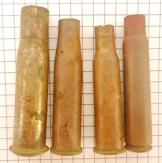 №2-Венгерский Манлихер 8x56 R ,южнее Воронежа весьма насыпанно ими по берегу Дона. http://www.municion.org/8x56RMann/8x56RMann.htm №3-Мосинка ,по фото плохо видно,примерно конец 30х годов выпуска №4-7,92х57,эхо войны,Маузер. |