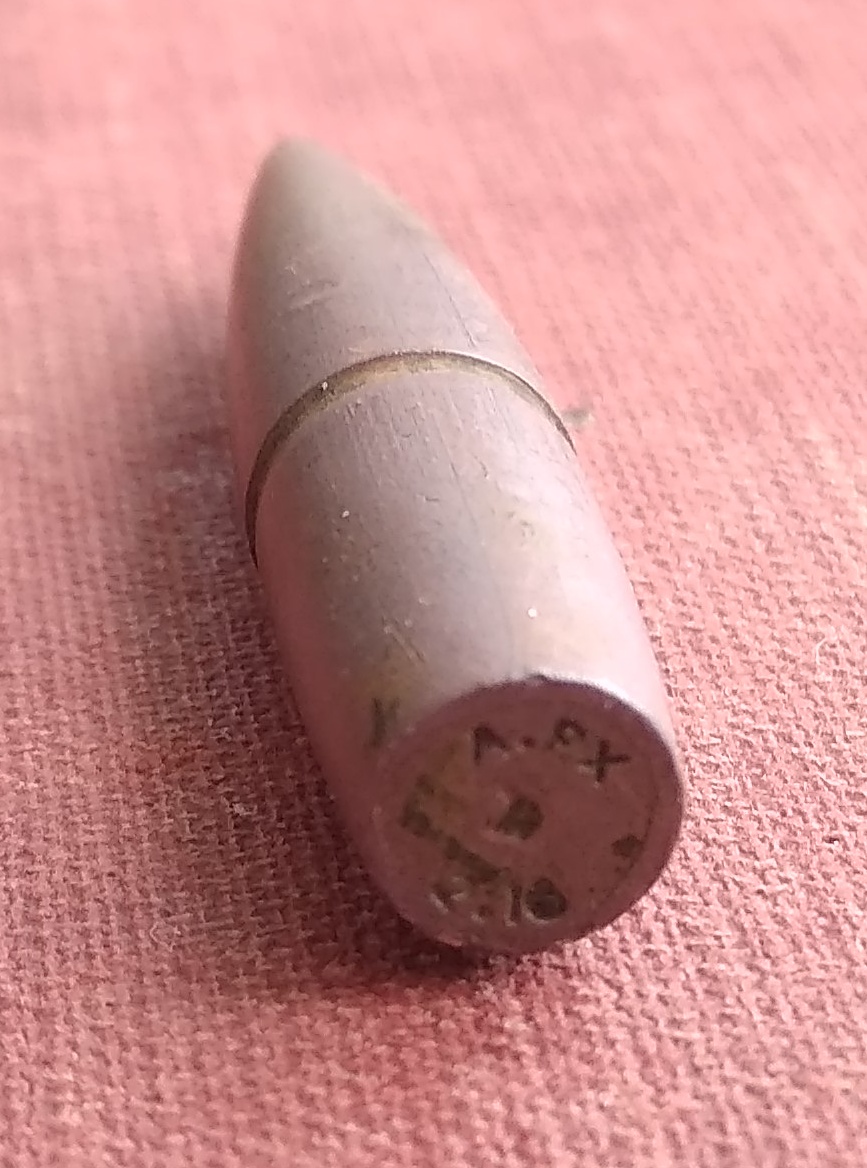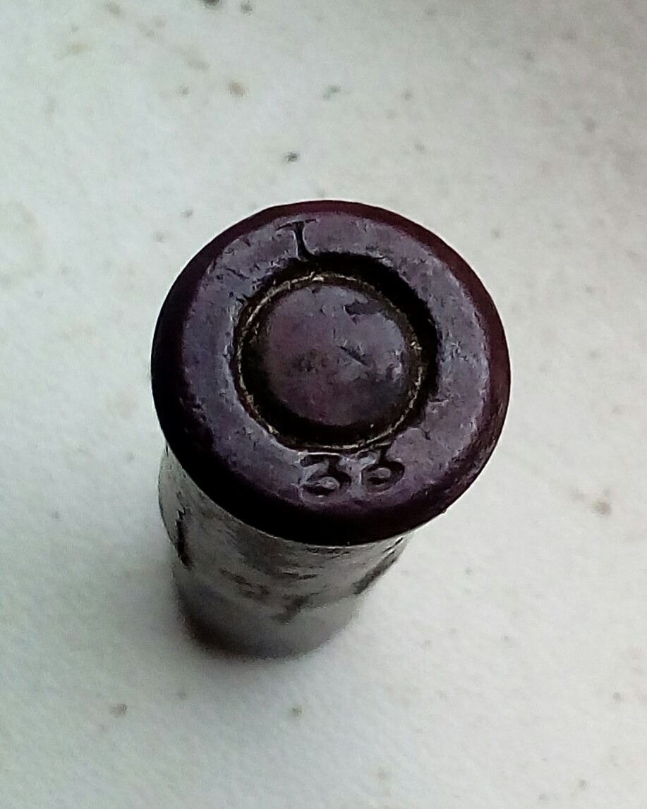 Приветствую всех. Подскажите, нагановский? Читается вроде 33, сверху Т. Пуля была утоплена под срез гильзы. На гильзе две точки кернения фиксации пули. Заранее благодарен.