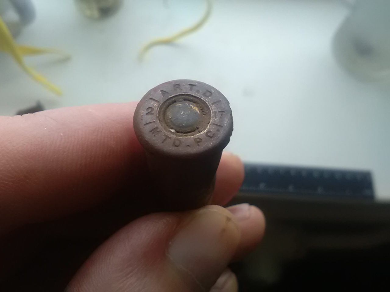 2. Гильза патрона 8,2х66SR к карабину Кочетова. 3. .303 British - Peters Cartridge Co., Kings Mill, Ohio. США 4. Клеймо "П П 14" - С.Петербургский ПЗ. 1914г. |