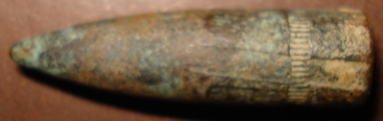 Помогите-просвятите.Средняя полоса,брошенная в 60-е 20 века деревня.Войны были все вплоть до 1943(и гансы и наши).Впервой попалась такая вот пуля(гильз вокруг никаких).Смущают "нарезки"по бокам(4 штуки):