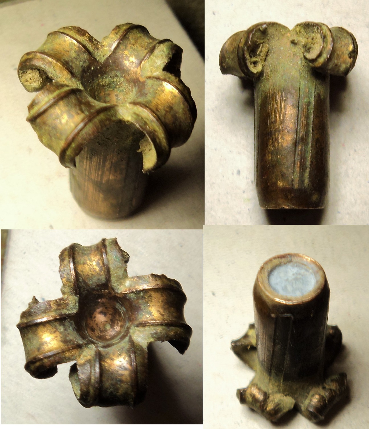 QUOTE(-АБВ- @ Dec 25 2019, 18:19) Выпуклое клеймо на гильзе оформляется вдавленным зеркальным его отображением на пуансоне. "Клише" - это пуансон? "Тыльник" - это донце? "Отливается" - это штампуется? "Центровка под капсюль" - это капсюльное гнездо с наковаленкой? Если я правильно понял, что вы имели в виду, то тогда вы почти правы. Только на вашей гильзе клеймо получилось вдавленным и потому его получить можно только тогда, когда его зеркальное отображение на пуансоне будет выпуклым. Посмотрите: https://www.youtube.com/watch?v=Iygm_O94toc Многие вопросы отпадут. Видео не идеальное - если не понравилось можете найти другое. Их много. Тогда вам будет понятно, что никто "тыльник" не "отливает" А можете не смотреть и оставаться в уверенности в собственной правоте - это ваше право. Всё что хотелось донести продемонстрировать начинается с 4мин до 4.50 примерно. … когда слева для клеймения... к гильзе подходит набалдажник с подкапсюльной пимпой . Ну вот назвал тыльником... Вопрос то в трактовке увиденного. Чего проще сравнить "следы" наплавки и резки. Формирование рельефа и около... у них происходит по разному. У подопытного резка, тогда отливка или пиредавливание получается. ps. эта гильза клеймилась выпуклым рельефом. Сообщение отредактировано O.DYN: Dec 25 2019, 19:36 |