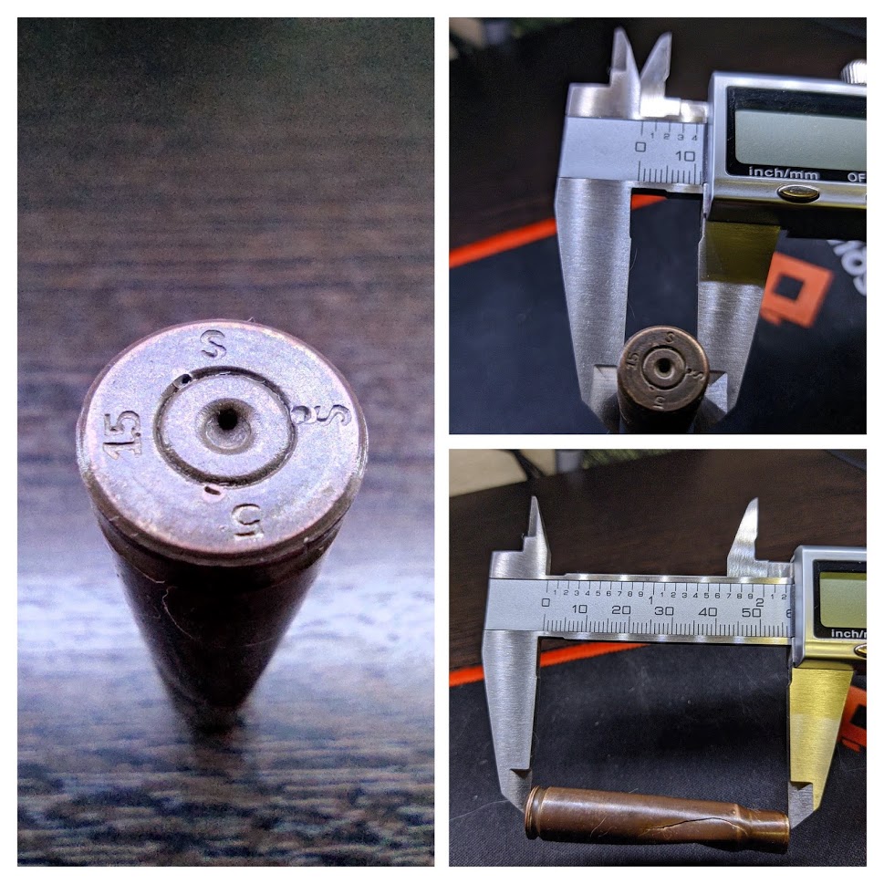 Доброго времени суток, знатоки. Подскажите что это за гильза. Я искал но ничего похожего не нашел, если плохо искал, то буду благодарен за ссылки где посмотреть. Спасибо.