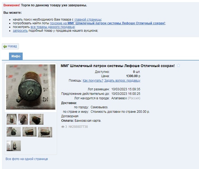 QUOTE(-АБВ- @ Mar 12 2023, 20:01) Это вам повезло. Видимо так совпало, что на Мешок сразу после выставления лота зашел "истинный ценитель", голодный до "раритетов". А может быть, просто человек был не в теме. Вот скан с площадки Аукцион... Нижний, как и у вас, с клеймом "9", Ссылку не даю, т.к. форум ее, вероятнее всего, не пропустит. Возможно.А вот от Браунинга(выставлял выше),Мешок лот удалил,но человек лот добавил в избранное.И купил 3 штуки за 1000.Хотя то же полно таких. |