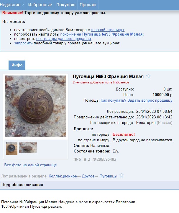 Мешок это вообще не предсказуемое дело выставил как то пуговицу №93 Франция малая Думаю дай ка попробую поставил 10тр,,По месту заинтересованные больше 5 тр не давали. Продалась,,,,В Читу отправил,,Такие вот дела Блин. Вложенные эскизы изображений |