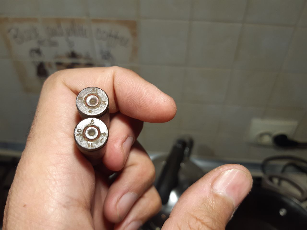 QUOTE(eirf @ Dec 29 2024, 11:55) Штангельциркуль электронный, видимо батарейка садится - выдает разные значения. Перемерял обычным, калибр у двух пуль слева - 20 мм. (+-1) и пустоты снизу у них нет. У первой слева пули цвет уж больно не старинный (?) Вот видите! Не стоит пользоваться электронным мерительным инструментом. Если пустоты снизу нет, значит это точно НЕ расширительным пули по типу Минье. Не понимаю, зачем нужно было "ляпнуть" такое, даже ничего не уточнив. Первая, чисто визуально, вообще кажется, что от какого-то "безумного" нитро экспресса. Не знаю, были ли такие калибры. Самому интересно, что скажут спецы! Именно, кто реально в теме. Вес ещё, дайте пожалуйста, для лучшего понимания. Сообщение отредактировано Шаръ: Dec 29 2024, 12:14 -------------------- Изучаю всё, относящееся к припасам древней артиллерии. Приобрету, проконсультирую.