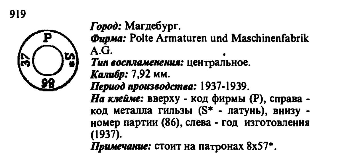 У меня такая гильза, только код партии 118 и год выпуска 36. Здесь же написано, что производились с 37го... Неточность справочника, или в 36 году другой завод выпускал и тд? ЗЫ: Дайте пожалуйста ссылку на расшифровки подобных маузеров на http://www.municion.org/ вообще не пойму куда нажать там.. Если кто разбирается дайте ссылку, так чтобы сразу страница нужная открылась. Сообщение отредактировано black_dog: Oct 25 2011, 10:57 |