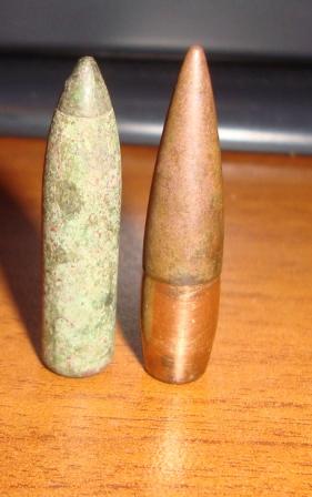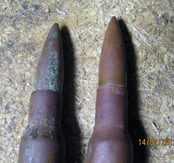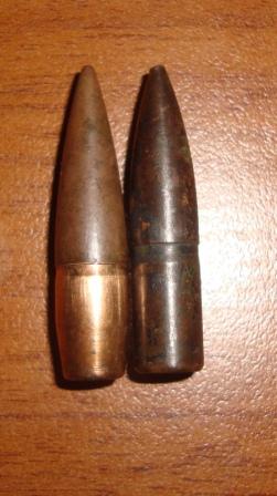1 и 2 фото две неизвестные мне пули (первая подозреваю каркано или арисака) первая справа- маузер для сравнения. 3 и 4 фото маузер и неизвестная мне пуля. Вложенные эскизы изображений -------------------- Рыть и копать!!!