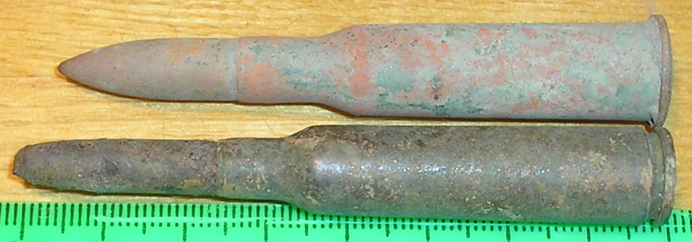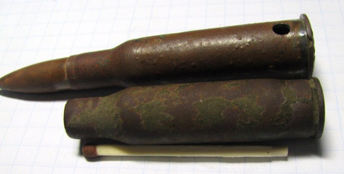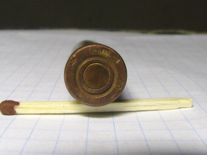 Приветствую! прочитал все страницы, видел похожие моему патрону, но точно такого же не встретил.. Помогите пожалуйста - на финской позиции по ВОв среди прочих нашел три таких патрона. фото по сравнению с мосинским и увеличенные донышка и пули представляю вашему вниманию. спасибо откликнувшимся!