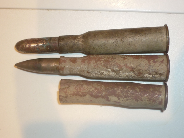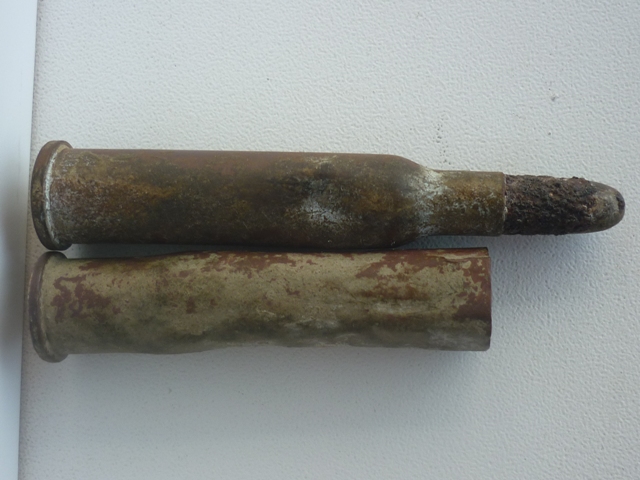 Похож на норвежский пулемётный, но в справочниках по клеймам ничего похожего не нашёл... Быть может ещё от чего-то? Я бы бросил это на месте, но сын заметил, что патроны различаются по длинне... Любопытно!!!