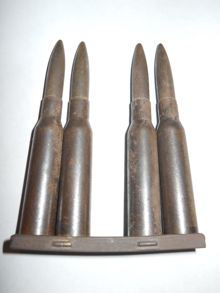 QUOTE(bad_alex @ Aug 29 2012, 09:10) Уважаемые специалисты, найдена обойма с 4-мя патронами. Деактивированы. Внутри порох пластинчатого вида, по типу охотничего Сокол, только темно-серого цвета. Димаетр пули 6,7, высота гильзы 50,8. Предполагаю, что Арисака, вопрос какого обазца? И смутило изображение 13 на последней странице рисунков из справочника Жука, где такая обойма классифицируется как обойма к французским винтовкам 07/15 М34 и MAS 1936. Вы бы один патрончик без обоймы сфотали. арисаку нисчем неспутать, а так может и манлихер, хз. |