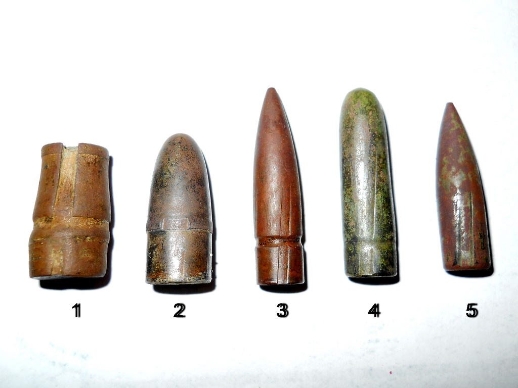 QUOTE(мануил @ Sep 24 2012, 07:47) не смертник точно. Спасибо за ответ. А вот еще несколько находок, которые не могу найти в справочной литературе. Пули по очереди : 1. - ? (и пуля ли это вообще, что-то я начал сомневаться); 2. - Виттерли-Витали (10,35) на фото для сравнения; 3. - ? (высота 33мм, диам. - 7,8мм .); 4. - ?(высота-33мм, диам.-около 8 мм.); 5. - Мосинская трехлинейка. на фото для сравнения. На третьем фото одна из гильз найденых там же скорее всего револьверная высота -15-15,2 мм., диам. внутр. - около 7 мм. Гильзы с закраинами(рантовые). Вложенные эскизы изображений -------------------- Искать Всегда,