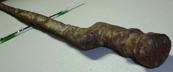 Уважаемые ! Вот, откопал такую вещицу в местах боёв 1943-го.Вокруг много чего советского,немецкого и американского... Ручка была деревянная(остатки есть чуть-чуть) остальное железяка.Подскажите пожалуйста "чьих он будет".Я что-то ничего похожего из каталога на первой стр. не нашёл.Спасибо заранее!