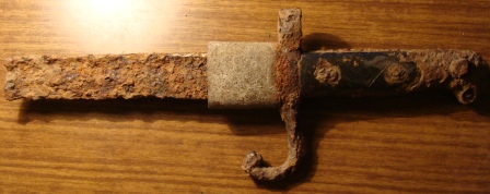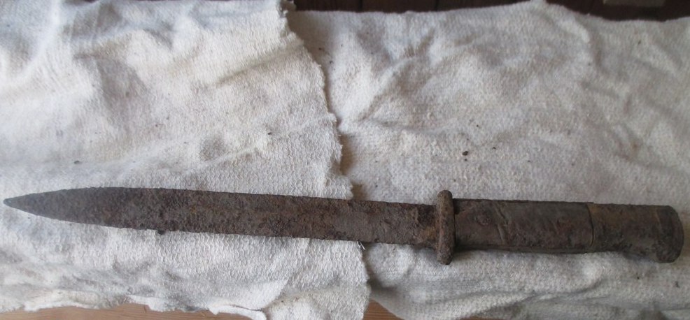 Сравните с хорошей фото штыка от винтовки Арисака. Похоже.Но у Арисака круче загиб.
