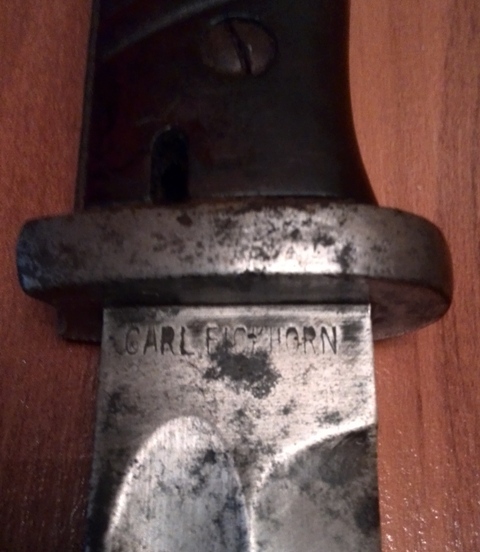 Производитель Carl Eickhorn/Solingen образца 1884/98 n.A 111.Дата выпуска мне точно не известна,по одним источникам это S/172 и 1935г.в.,по другим это S/175 и соответственно 1937г.в.,что в принципе сути дела не меняет,т.к. эти года подпадают под запрет производства вооружений Германии. Все винтики крутятся,кнопка рабочая,жало было подточено(может самим первым владельцем),а так всё ОК. Ножны и жаба не родные(положены для антуража),жаба по 1942г.,ножны с клеймом 7000. С ув. Сообщение отредактировано наводчик Шмульке: Nov 10 2015, 15:33 Вложенные эскизы изображений -------------------- Железный капут !!!.