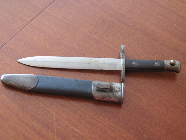 Приобрёл недавно штык нож и никак не могу определить когда был выпущен и кем. Имею определитель А.Н.Кулинского, но там не могу найти ничего похожего. Нож не имеет никаких клейм, только выбит номер, и то только на ноже. На ножнах ничего нет. Общая длина штыка 31,5. Длина лезвия 20. Ширина лезвия 2,6, однолезвенное. Ножны коженные. Может кто-то что-то знает или видел? Жду подсказок. Буду благодарен.