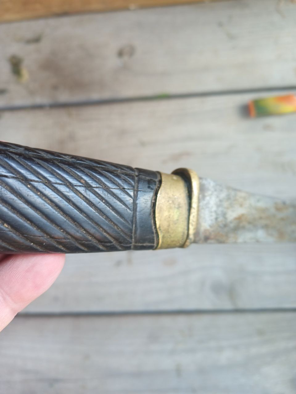 QUOTE(навуходоносор @ Sep 22 2024, 14:40) Добрый день. Нашел изделие, непонятно что это? На штык нож не похож. Подскажите пожалуйста, может кто знает. Здравствуйте. Шашка была. Её переточили в нож. -------------------- Изучаю всё, относящееся к припасам древней артиллерии. Приобрету, проконсультирую.