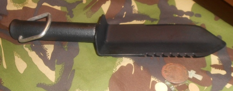 Заточил и обмотал ручку шнуром сам. Использовал его весь прошлый сезон, по результатам применения могу сказать что нужен какой-то чехол по образцу леше или минелаба, сам носил его в гарретовской сумке для находок, если много шмурдяка не брать , то нормально и не тяжело. Есть один существенный минус - быстро тупится, всё-таки надо делать более острый угол самой лопатки. В остальном им доволен, сломать думаю это надо сильно постараться, титан как никак.