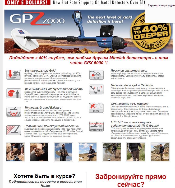 QUOTE(verdas @ Feb 13 2015, 23:45) на сайте минелаба выложили характеристики GPZ 7000 Режимы поиска Режим Gold Высокая урожайность, генерал, Extra Deep Первый тип Нормальный, Трудно, Серьёзный Шум Отменить Автоматическая и ручная (256 каналов) Чувствительность Уровень (1-20) Объем Range (1-20) Предел (1-20) Пороговый уровень Уровень (1-50) Шаг (1-100) Аудио Сглаживание Off, Low, High Ground Balance Авто и ручной режим (Quick-Trak кнопку пуска) Сопоставление функций Координаты GPS (DMS градусы, минуты, секунды), DM (в градусах, минутах) Уровни Увеличить 10x10, 20x20, 100x100 (м / м в клетку) Geosta 100 FindPoints, 100 путевых точек, 10 GeoHunts GPS двигателя в Blox Neo 7 (56 каналов, SBAS: WAAS, EGNOS, MSAS) Физические характеристики Катушка (ГПЗ14) 14 "х 13" Super-D конфигурации с skidplate (водонепроницаемый до 1 м / 3 футов) Аккумулятор Для Ion аккумуляторная обновления (7,2 DC, 72Wh) Звуковой выход 6,3 мм (¼ ") не водонепроницаемый разъем, Wi-Stream беспроводной передачи сигнала Наушники KOSS UR 30 100 Ом с 6,3 мм штекером (¼дюйм) (не водонепроницаемый) Беспроводной аудио WM 12 модуль (14 каналов) Подключите один или более WM 12 модулей Дисплей Полноцветный ЖК-дисплей (320 х 240 пикселей) Детектор Вес 3,32 кг (7,32 фунта) (включая ГПЗ 14 катушки, skidplate и 72Wh батареи) Детектор Длина Рухнул: 1170 мм (46.1 ") в горизонтальном положении, упакованные положение: 1304 мм (51,3") Расширенный: 1526 мм (60.1 ") в горизонтальном положении, упакованные положение: 1651 мм (65.0") Упряжь PRO-SWING 45 с дополнительным J-стойки, крестовины и GA 10 Руководство Arm Другой Ключевые технологии ЗВТ, Супер D, GPS, Wi Поток, W8 Подключение к ПК Интерфейс USB для XChange программного обеспечения 2 ПК XChange2 Программное обеспечение поставляется на компакт-диске (Windows XP, Vista, 7, 8, совместимый) Обновления программного обеспечения ГПЗ 7000 и WM 12 Обновление ПО через XChange 2 (с доступом в Интернет) Детектор Меню Навигация по странице (6 Обнаружение страниц, 5 Карта сайта) со встроенным в книге Руководство последовательностей Интерфейс пользователя Языки Английский Испанский Португальский Французский Русский Арабский интересно сколько сиё чудо стоить то будет?? Поступили в продажу. Вложенные эскизы изображений -------------------- Не ленись, с интернетом подружись.Много всякого найдёшь и отлично заживёшь!