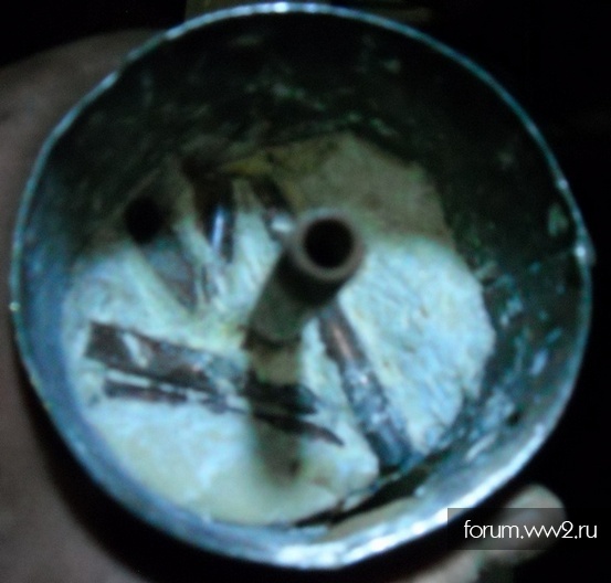 QUOTE(brams @ Jul 20 2015, 11:02) 17 это детонатор, если заместо него просто пустое место, то безопасен. ![]() Даже если место не пустое, детонатор в этих дистанционных трубках - обычная пороховая петарда, которая зажигала порох для того, чтобы сработал шрапнельный снаряд, которого здесь уже нет. При самом худшем раскладе будет только громкий хлопок. Это - не осколочная граната, задача трубки была - только зажечь шашку в стакане с пулями. Но я сильно сомневаюсь, что взрыватель не сгнил. У нас эти трубки попадаются в огромном количестве; последняя позавчера у меня просто в руках пополам развалилась. Ни разу не попалась такая, чтоб её эрозия так или иначе не уничтожила. Их алюминиевые корпуса подвергаются эрозии почище железных, щелей в корпусе хватает и внутри там, скорее всего, полный распад всей механики. 70 лет - большой срок. -------------------- Пытался оставить подпись по-всякому, ничего не выходит. Как вы это делаете?
