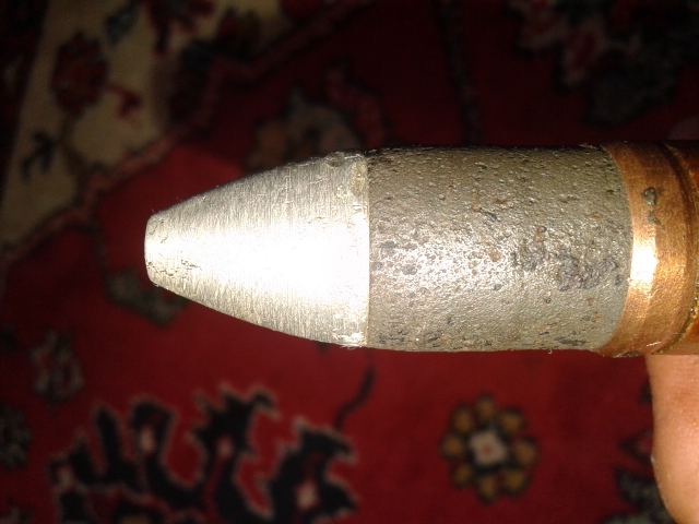 QUOTE(луговой @ Jul 24 2016, 20:35) Добрый вечер . Наднях попался такой боеприпас. Вроде стрелян но кавырять нестал ( вдруг осечька). На голове никак маркировак, на кальце нет нареза от ствола. Подскажите опасен или нет? Очень похож на ШВАК бронебойно-зажигательный с алюминиевым баллистическим колпаком,осколочные шли обычно с стальной бошкой К-6,она немного меньше. Лично я других осколочных не встречал,но в войну как только на заводах не импровизировали. http://weapons-of-war.ucoz.ru/publ/33-1-0-99 |