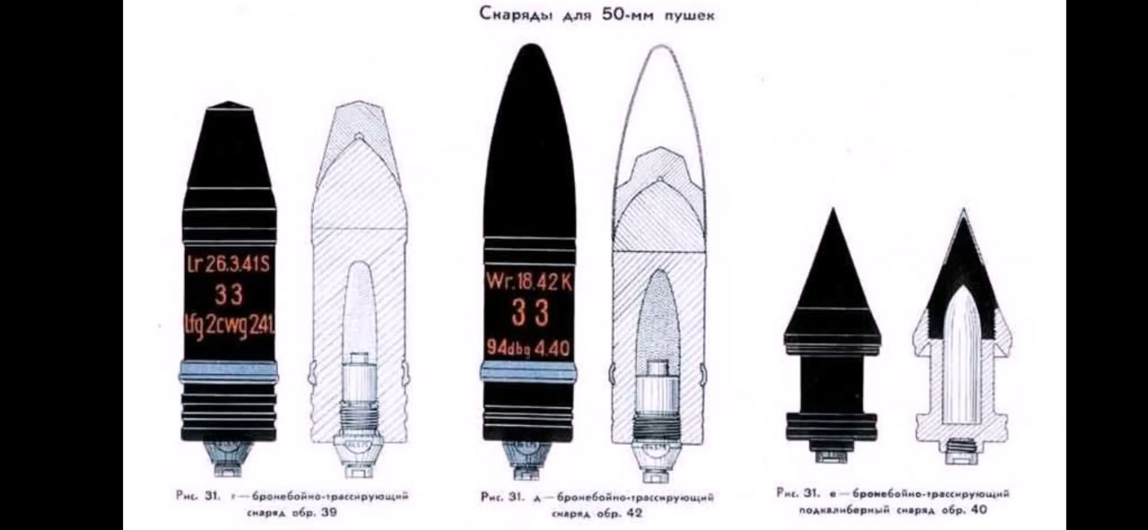 5 cm Pak 38, бронебойно трассирующий, может содержать ВВ.