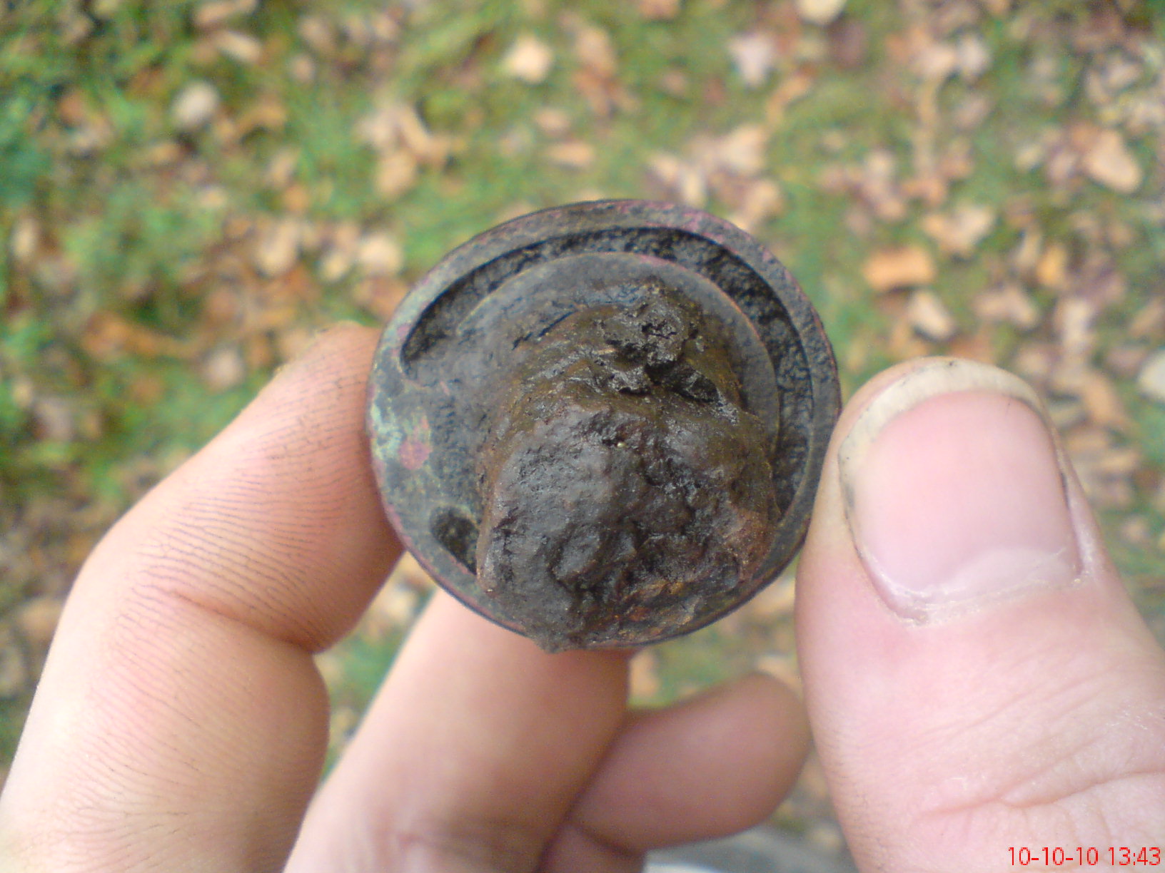 В боеприпасах не силен, поэтому как выкопал, так тут же и прикопал. Но фото для интереса сделал спец. для вопроса знатокам: правильно ли я сделал, что прикопал?