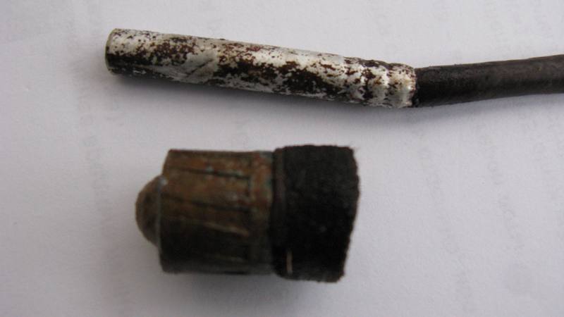 QUOTE(Lombardin @ Jun 26 2011, 21:13) Коллеги! Копая по старине волей-неволей поднял пару вот таких предметов, благо немецкие позиции проходили по краю исчезнувшей в 18 веке деревни. Хотелось бы уточнить что это за штучка мне попалась (желтенькая, тяжеленькая, с пулей внутри, с пояском с насечками снаружи и с капсюлем)? Сроду таких не то что не видел, даже и не слышал. Опасна ли? От второй "штучки" избавьтесь.Это детонатор с обжатым в него бикфордовым шнуром.Такие предметы ещё взрываются.Знакомые мне коллеги от войны такие называют однопальцевыми - по количеству возможных повреждений для организма |