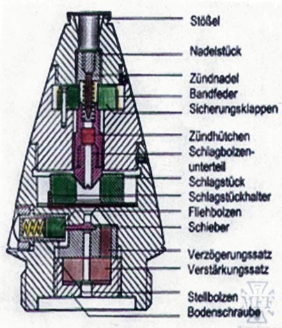 QUOTE(brams @ Jan 9 2012, 16:05) Подскажите по взрываку L.W.M.Z.23.nA Именно как на схемке. Там только капсуль или ВВ тоже присутствует? Опасен - нет? Будем считать что он несработавший! Тащить домой из леса можно? Дюже сохран хороший. Фото из инета. Взрыватель к 7,5 см немецкому осколочно-фугасному снаряду.В принципе-если не навинчен детонатор,то безопасен.Внутри есть капсюль-воспламенитель,но они как плавило не сохраняются. |