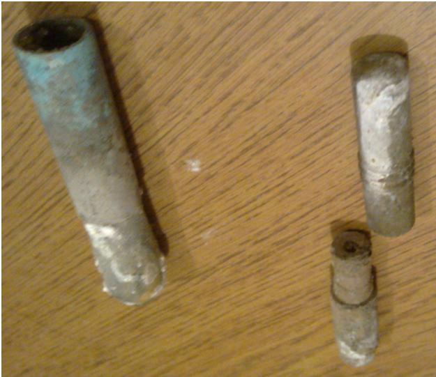Справа ковешников, в верхней "трубочке" ВВ инициатор, в нижней трубочке- пороховой замедлитель и капсюль по типу "жевело".