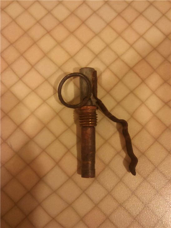 QUOTE(Lombardin @ Nov 9 2012, 21:13) Коллеги! А вот в тот же день, когда попалась рукоятка от РГД-33, попалась и другая штучка (была разведка местности по старине, а попадалась как раз в основном "война"). Эта штучка похожа на М-34, в сохране. Похожа, и пожалуй только. Дело в том, что у нее "медный" вид, на железо как то не очень тянет, чека отсутствует. В средней части цилиндрического корпуса виден какой-то штифт в пазу, к которому приделано нечто вроде тросика тросика. Вид у этой щтучки такой, как будто она состоит из 2-х соосных цилиндров, причем внутренний цилиндр вытянут из наружного где-то на 5 мм. Штучка красивая, вначале была мысль что это какой-то средневековый замок, но когда была высказана мысль, что это какая то мина-растяжка, то уже не стали рисковать с дальнейшими перемещениями и ретировались восвояси. Правда рискнули все же сделать фото на мобильник, фото пока недоступно. Не встречал ли кто когда что-либо похожее на описанное выше? А что такое М-34? Ну и фото сего девайса надобно -------------------- И для тебя,и для меня