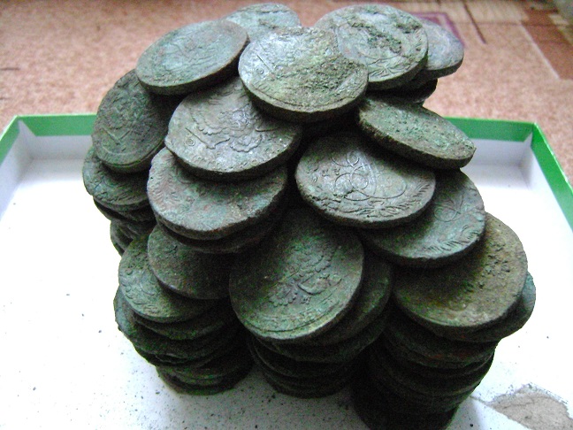 Как то подвозил одного знакомого, Своего товарища до дома. Проживал он неподалёку в селе, дворов там как оказалось по приезду 8 жилых , осталось . По дороге после не большого опроса про монеты, он припоминал что находили они большие медные монеты на огороде лет 17 тому назад. Село разделяла не большая речушка и по краям неё располагались огороды. Информацию проверять пришлось по весне . Проезжав мимо этого села вспомнил про медные монеты , про рассказ. Приехали к рассказчику с напарником , напоил он нас чаем по подробнее расспросили и двинулись на то место где они ранее находили монеты. На месте всё заросло травой часть огородов брошена . Приблизительное направление находок было определено ( Но тщетно). Он нас покинул пожелав удачи и направился в сторону дома . Вдоль и поперёк но больших монет не попадалось ( находки были и не плохие). 3 года на этих огородах собирали не плохие результаты. Как то поздней дождливой осенью , с одного хаборного места меня вежливо попросили , ехав обратно ГАИШНИК штрафанул за ремень . Без настроения решил посетить те же огороды . Походив по ним кое как вылез на траву на ноги налипала грязь стало тяжеловато и двинулся прямо по селу периодически копая сигналы. Увидел дедушку поговорив с ним он меня немножко под бодрив новой информацией.В том месте при копке картофеля братья накопали около 200 монет . Попросив дедушку пройти на место и уточнить , он указав что находили они их здесь . Всё заросло информация проверена нет монет . Вечерело быстро выходя из зарослей рядом с обрабатываемым огородом, под не большим кустом примятая трава , там я и решил срезать путь к авто периодически махая катушкой под ногами сигнал выкопал 2 копейки 1758 г и ...сигнал за сигналом . 1 день 96 монет . 2 день (спина ноет до копа , потом про неё забываешь) 178 монет. 3 день уже вдвоём 58 монет. Примерно на 400 метров от раннее указанных мест информаторов была распашка.(слишком давно это было и точно уже не могли они показать ) . И это не первый случаи на моей памяти . Были СМ . КМ . СПМ . АМ . ММ. Сильно не пинайте коротко не получилось . Вложенные эскизы изображений |