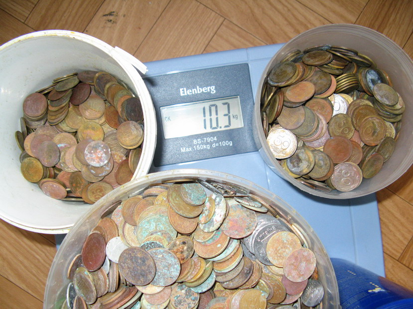 чистенькую свежую мелочь дети сразу разобрали на шоколадки и жена по магазином отоварила... глянул что за квартиру больше 1500грв надо идти платить,то-то обрадуются недавно нахамившие мне в банке "тётечки" в кассе..... Вложенные эскизы изображений -------------------- если у Вас нет моего скупа для пляжного поиска,можете написать мне в личку ...