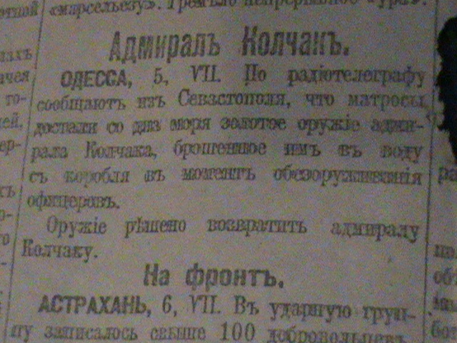 Вот вчера решил почитать свои старые газеты и вот нашёл интересную на мой взгляд заметочку.Адмирал Колчак.