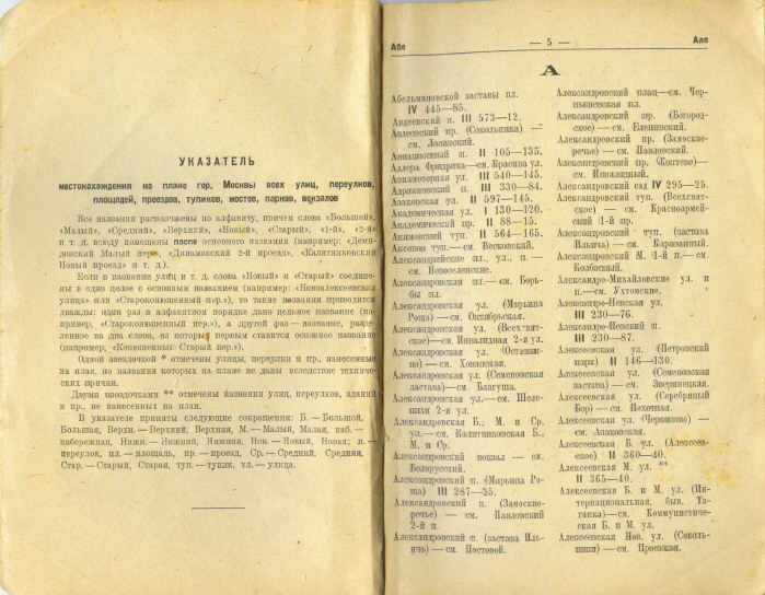 Указатель улиц, переулков, площадей, и.т.д. Москвы. 1936 год