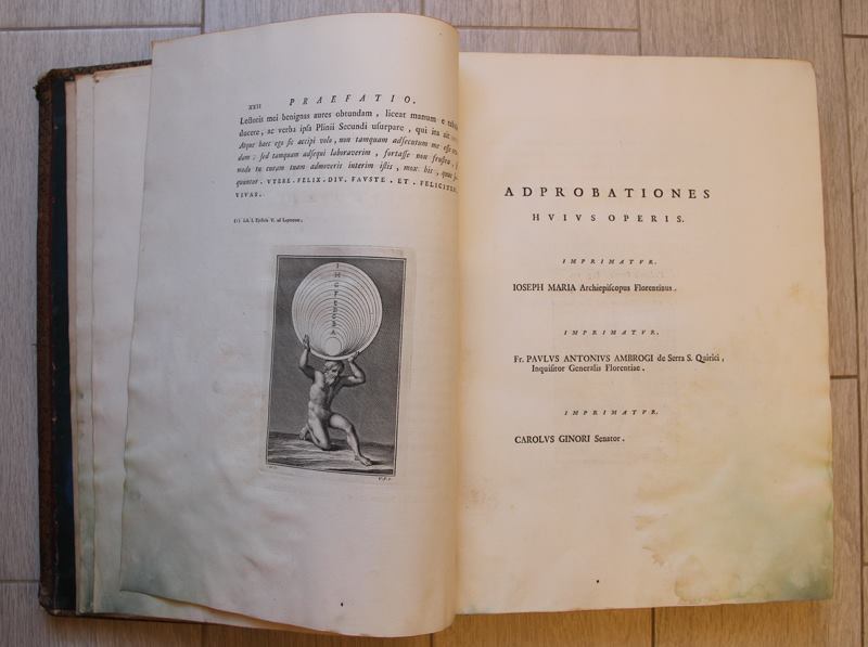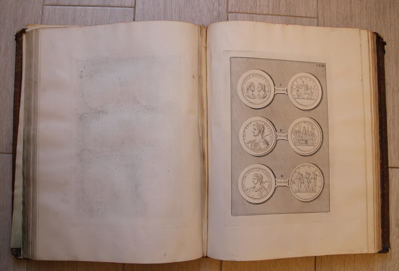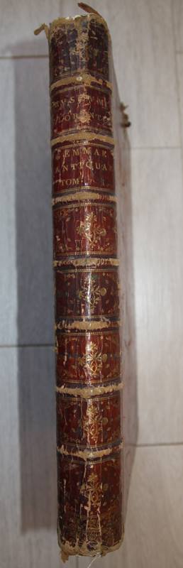 Состояние следующее: 3 тома, побитые вандалами... и внешний вид и некоторое кол-во страниц в них вырвано... Том 1 самый пострадавший, нет примерно 50% листов, вырывали гравюры... Том 2 - почти целый, но подмочен был когда-то водой, остались разводы, Том 3 -вырезана часть страниц, гравюр нет. Размер тома ок. 50 на 35 см. Обложка - дерево в красной коже, золото по торцам. Вложенные эскизы изображений |