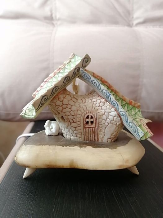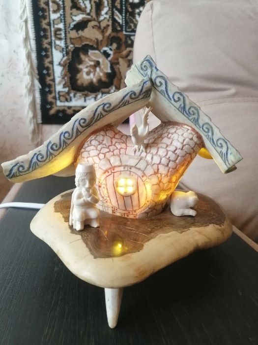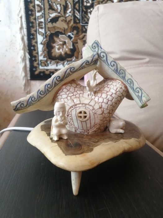 Домик сделан из рога Крымского оленя (2 рога достигали 3 м, толщина бала солидная) Фигурки лось , подставка фисташка . лампа диод 2 в. Вложенные эскизы изображений -------------------- Не судите строго Я только учусь .