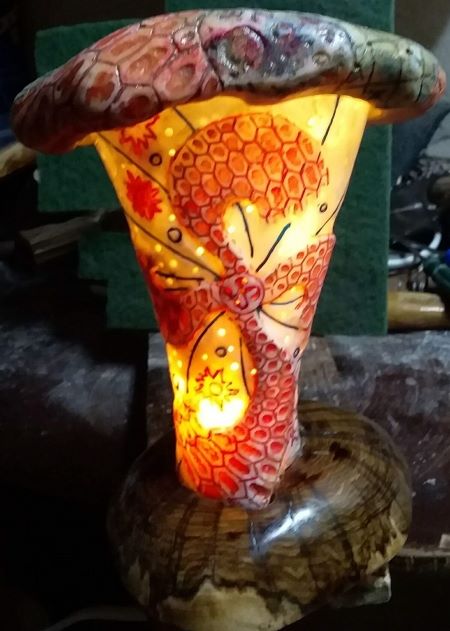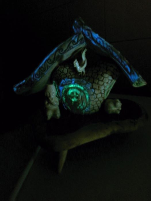 Всем доброго вечера. Это крайняя работа , делай её в течении 6-7 лет . Ночник с использованием флуоресцентной краски . Сама краска бесцветная , проявляется только в тёмное время.