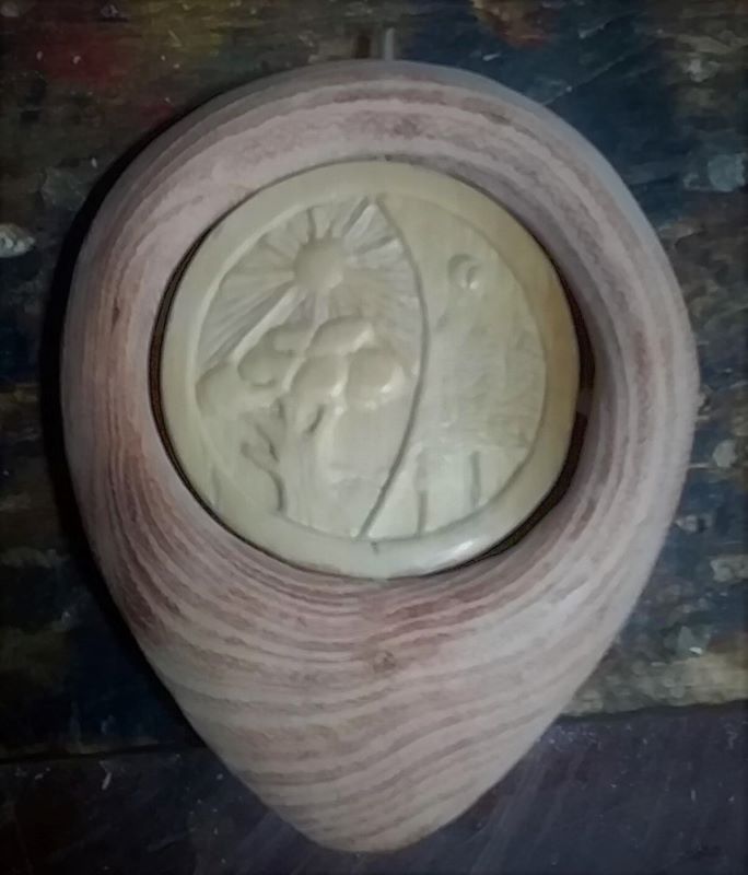 Почему я решил, что основа - это Япония? Ну... потому что традиционная резьба по бивню более характерна Японии или кетаю, а не той местности, где Вы практикуете. Это как матрёшка - где её не изготавливай - а основа воспринимается, как русская. 13 числа я упомянул мандзю, а 28 Вы уже выкатили некое подобие и то, что это не русская матрёшка, не хотьковский медведь или не хролмогорские или эвенкийские мотивы вроде определить можно? И так - это миниатюра определённой формы и размера, где изложен некий сюжет. В первоосновах он должен что-то значить, а что изображено и какой смысл в сочетаниях присутствующих предметов? Или просто вставили всем известную реплику "мирового дерева" и какой то ёлки, поделив это на день и ночь? В чём смысл и символика? Напоминание хорошей женщине о любовной встрече? |