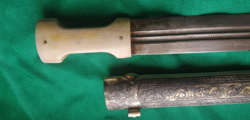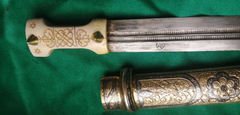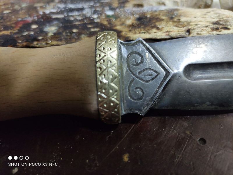 Ручка кинжала сделана из моржа , с гвоздиками вышла беда - ложили в посылку но они не доехали . пришлось делать новые - серебро . Вложенные эскизы изображений -------------------- Не судите строго Я только учусь .