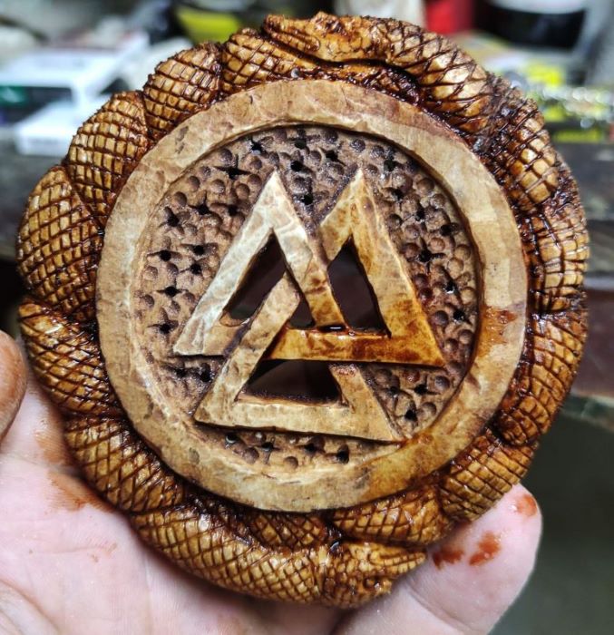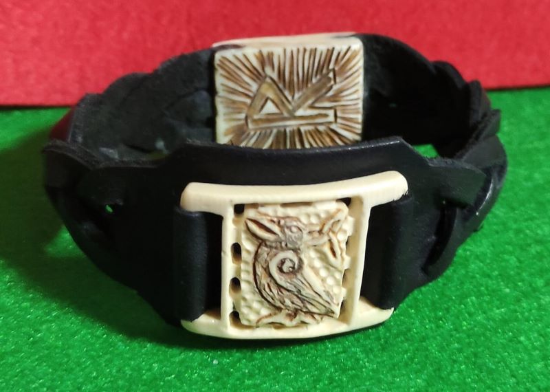 Была,когда-то,тоже мыслишка..попробовать совмещать кожу и бивень.Но не вЫгорело.Хотел реализовать всё это в подвесках-амулетах,на шнурках. Если найду браслет кожаный(делал для подруги знакомого байкера),с бивнем..покажу здась. -------------------- Прежний аккаунт С-правый(репа 36 кг).Более ранний аккаунт,с 2011 года,ник СергейN(176 кг.репа).
