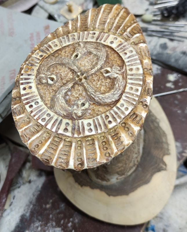 спасибо за оценку моей работы . Я рад что вам понравился мой подарок . и вот работа из кусочков бивня мамонта . Это браслет на магнитной застёжке .
