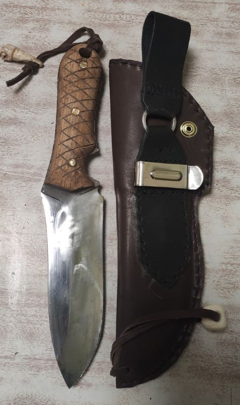 Всем доброго времени суток . Эта работа делалась в спешке , для моего друга . Сегодня он уже на территории Херсона. Сам клинок сделан давно , ручку и ножны пришлось делать в срочном порядке .В связи с этим прошу прощения за фото - что успел то и с фотографировал