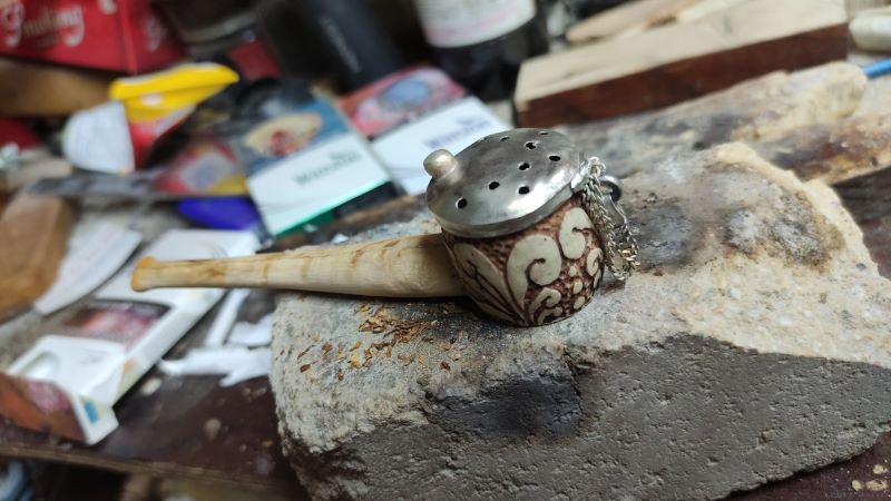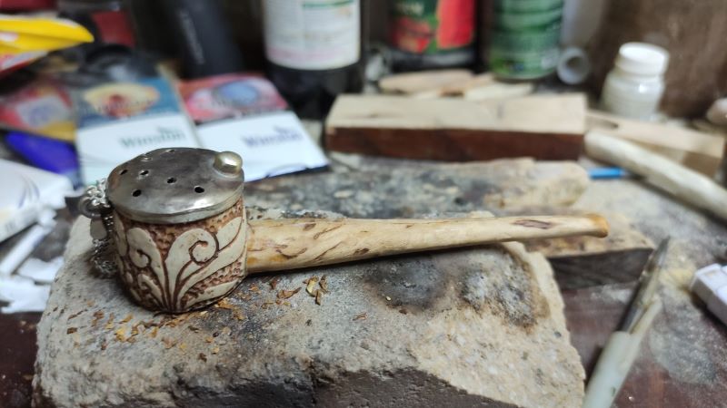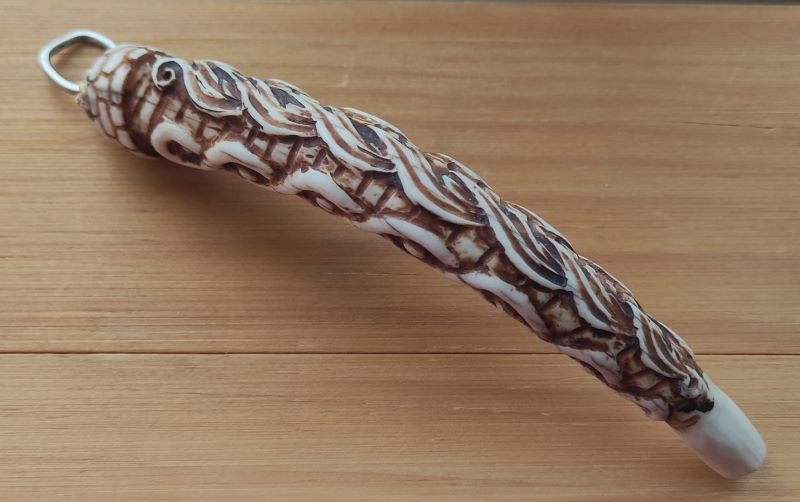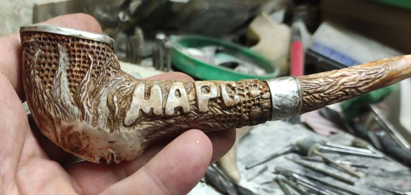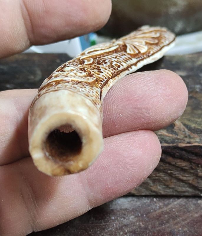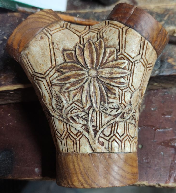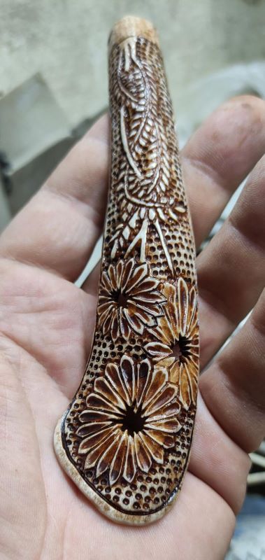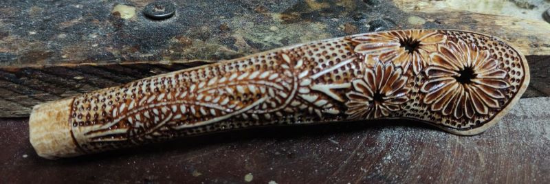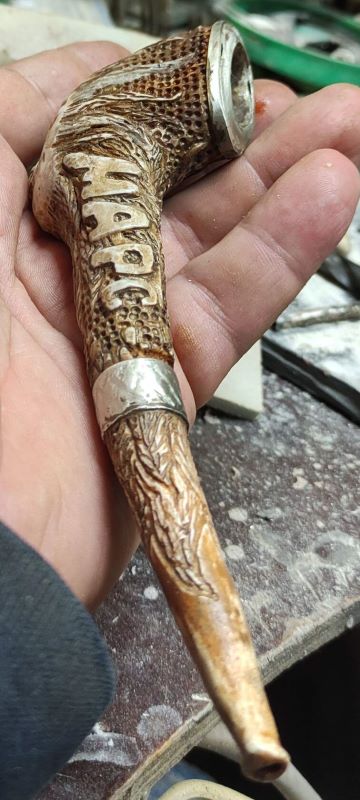 была необычная для меня работа - Трубка . давно думал и вот тока сейчас реился. длина 15 см , высота 5см . Рог лося, рог оленя, мельхиор . Вложенные эскизы изображений -------------------- Не судите строго Я только учусь .