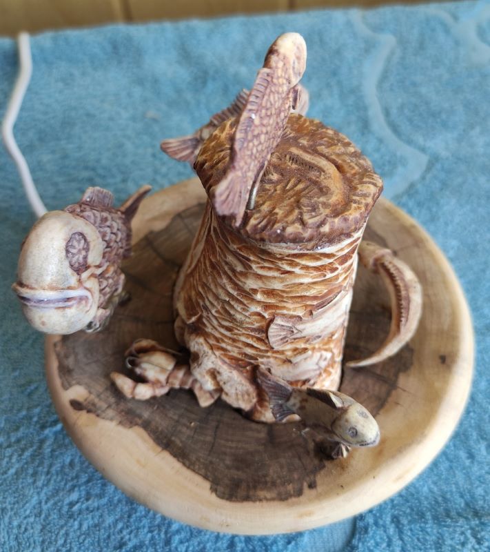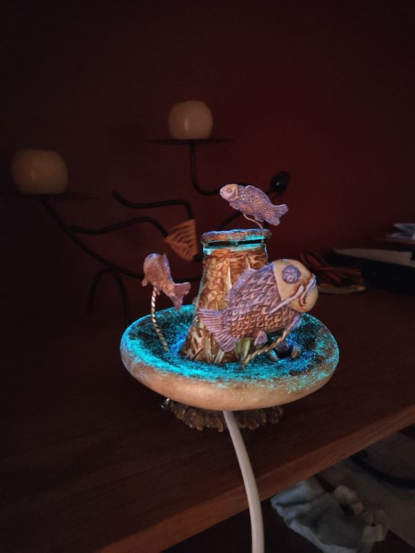 Давненько меня здесь не было . Работа ещё в работе но почти готова, светильник ночник для младшего сына . Вложенные эскизы изображений -------------------- Не судите строго Я только учусь .