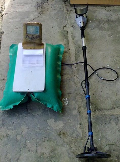 сегодня копал в ветер.есть конечно неудобство по поводу сноса надувной подушки при ветре.под самой подушкой висит груз он немного придерживает.на самой катушке лежит груз.я по быстренькому приспособил изолятор от высоковольтки.этот груз работает в качестве якоря,когда копаешь двумя руками.когда хожу по пояс,то кабель зажимаю между транцем и надувной подушкой,что бы дисплей блока смотрел на меня.при переходе по шею-освобождаю и ориентируюсь уже по звуку.защита у меня съёмная.как и видно на фото,одевается сверху.сам блок переношу отдельно в боксе для приготовления пищи в микроволновке.после копа обязательно всё на просушку!